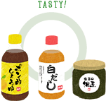 ポン酢しょうゆ、塩昆布、海苔の佃煮など、和風の