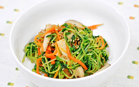 豆苗のピーナッツ和えナッツがアクセントになった滋味あふれる一品- 5分