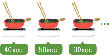 豆苗を15秒から75秒まで、15秒刻みにゆで、
